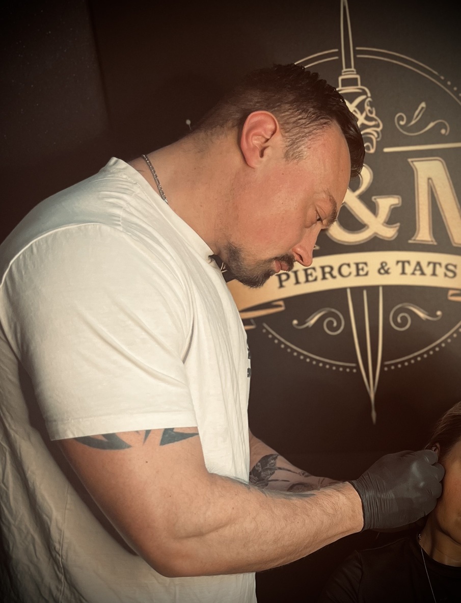 Piercings, heel erg populair en soms heel erg angstaandjagend. Mike onze piercer, is een sociale man die je direct op je gemak stelt, een gezonde portie stress is altijd goed, maar schrik moet je absoluut niet hebben.